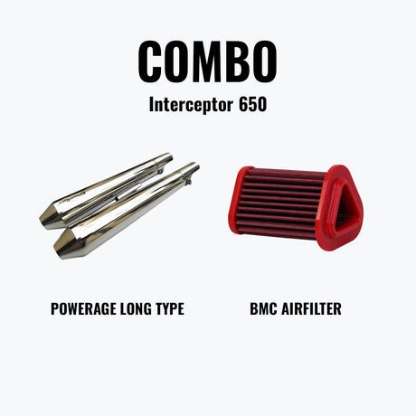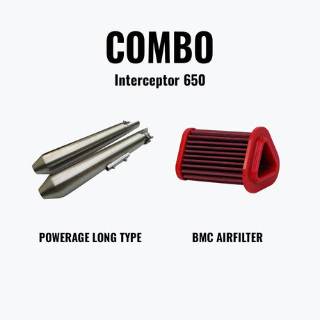 POWERAGE Long Type Brushed Steel Finish Interceptor 650 + BMC Air Filter