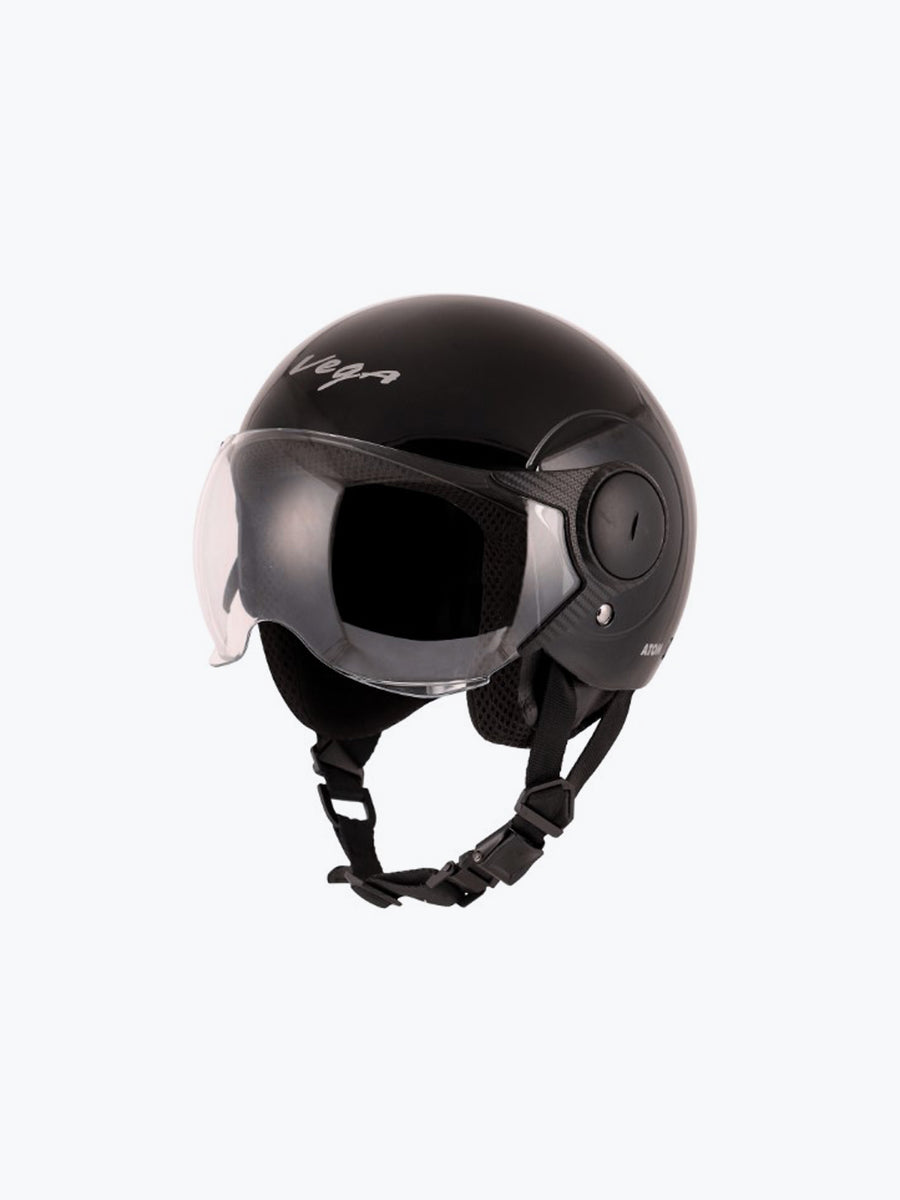 The VEGA Atom Black is a perfect blend of style, safety, and convenience, making it an excellent choice for urban riders. Available at Bandidos pitstop, this helmet features a sleek black design with a durable, high-impact ABS shell that ensures reliable protection while keeping it lightweight for all-day comfort. The scratch-resistant visor provides clear visibility and shields against dust, wind, and UV rays, enhancing the overall riding experience. Designed with compact ergonomics, it offers a snug yet breathable fit, thanks to its soft, cushioned inner padding that is both removable and washable for easy maintenance. The quick-release strap ensures hassle-free wear and removal, making it ideal for daily commuters. Whether you're navigating city streets or taking a leisurely ride, the VEGA Atom Black With Visor Half Face Helmet delivers essential safety, comfort, and style for every motorcyclist.